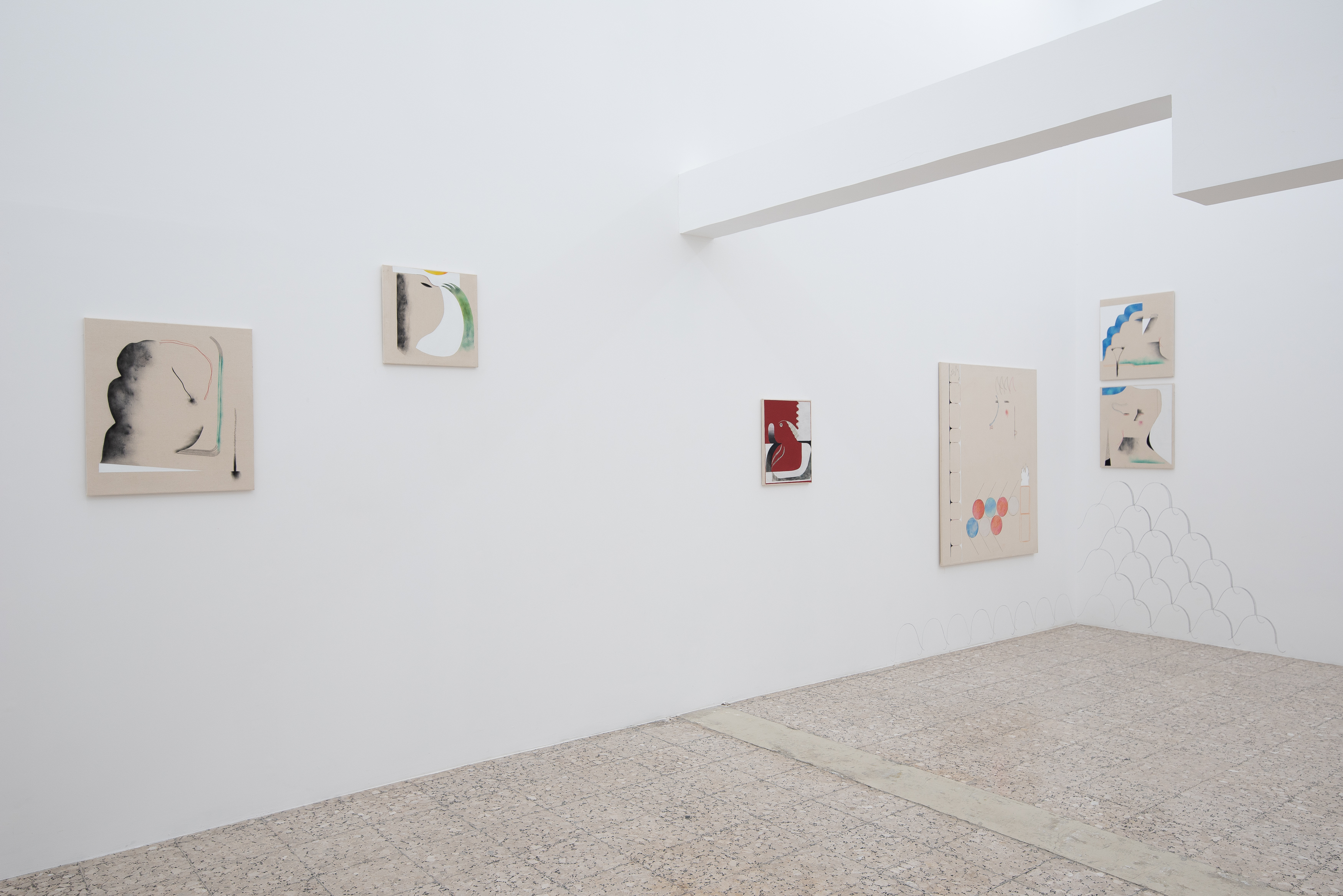 paper, Stelios Karamanolis uses raw canvases as ground.
